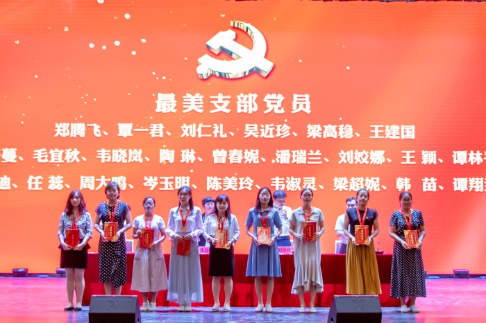 大会在庄严的国歌声中开幕。党委书记沈立君、党委副书记、纪委书记刘华政,副院长、常务副校长谢沛善,副院长、副校长潘大胜分别宣读了《2018-2019年度先进基层党组织、优秀共产党员和优秀党务工作者获奖名单》《“最美支部党员”获奖名单》《“学习强国”先进学习组织和学习标兵获奖名单》《“全国大学生同上一堂疫情防控思政大课”优秀观后感获奖名单》,并为受表彰的先进集体和个人颁发荣誉证书。