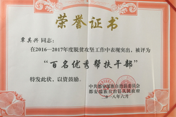 6月28日,都安县委、县政府召开扶贫开发工作总结表彰大会。对帮扶工作贡献突出的单位和先进个人进行了表彰,kaiyun官网被授予2016-2017年全县脱贫攻坚工作“先进定点帮扶单位”称号。驻菁盛乡内曹村第一书记覃其兴同志荣获都安县“2016-2017年度“百名优秀帮扶干部”称号。驻龙湾乡内闷村第一书记陈明健同志荣获河池市2016-2017年度“优秀驻村第一书记”称号。