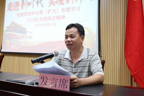 5月11日下午,kaiyun官网在东校区六楼会议室召开党委理论学习中心组(扩大)会议,专题学习2018年全国“两会”精神。中心组成员、各党支部委员、院团委委员以及各系部团总支书记/负责人参加会议。党委书记沈立君主持会议。
