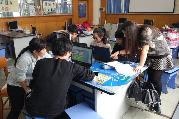 中职组沙盘模拟企业经营赛项指导老师给选手进行训练讲解