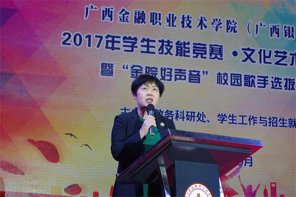 沈立君书记应邀为开幕式致辞。她首先代表学院领导向本届学生技能竞赛.文化艺术节的隆重开幕表示热烈祝贺,她表示,学生技能竞赛.文化艺术活动是学校精神文明建设的重要组成部分,是提供学生技能比拼、展示学生文化艺术风采、展现学生良好精神风貌、拓展学生素质全面发展的大舞台,也是树立优良校风、构建和谐校园的有效举措,同时也希望开展更多贴近校园生活、形式丰富多样的文化项目,为提高大学生的人文素养创造有利条件,并希望更多学生积极参加到各项活动中去,充分发挥自己的聪明才智,成长为德才兼备、全面发展的复合型人才。随后,沈立君书记宣布kaiyun登录中国入口登录2017年学生技能竞赛.文化艺术节正式开幕。