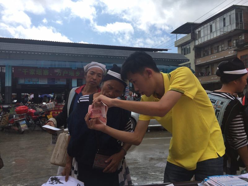 7月13日上午,kaiyun官网2017年暑期“三下乡”社会实践服务队在南丹县八圩乡集市上开展真伪钞、防金融诈骗知识宣传活动。