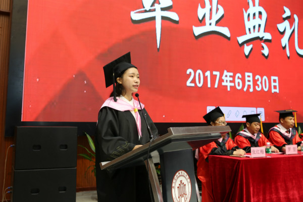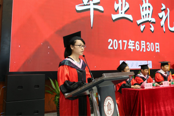 教师代表欧捷老师在发言中说到,各位老师们将一如既往关注、服务、支持同学们的成才和发展。完成阶段性学业只是“万里长征走完了第一步,以后的路程更长,工作更艰苦”。 希望同学们坚定理想信念,树立“千磨万击还坚劲,任尔东西南北风”的顽强斗志,以自己的智慧和汗水搭建属于自己的人生大舞台,抒写华丽的人生篇章。