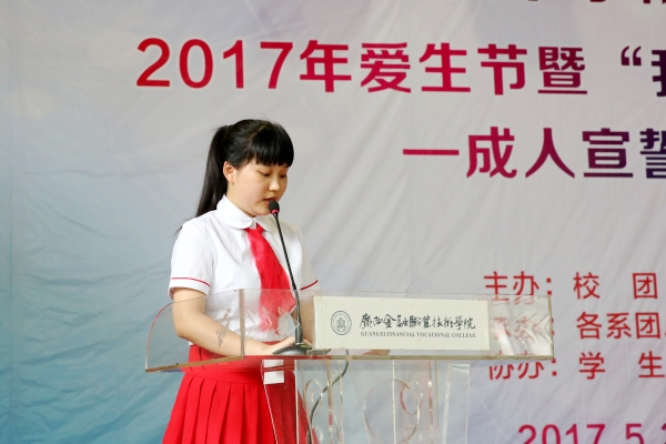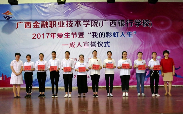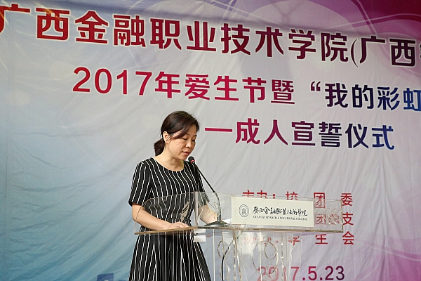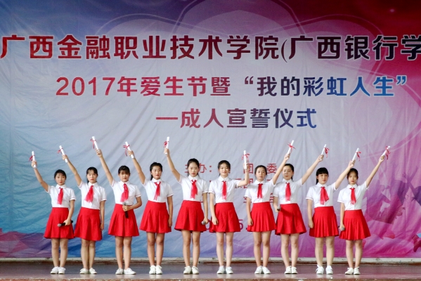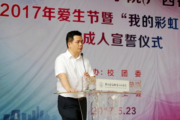 5月23日下午,2017年爱生节暨“我的彩虹人生”——18岁成人礼宣誓仪式在我(院)校东校区大礼堂内隆重举行。党委书记覃艳娟、院长沈立君、院长助理罗坚、各处室领导以及三百多名年满十八岁的学生参加了宣誓仪式。仪式由团委书记、学生工作与招生就业处副处长周海峰主持。