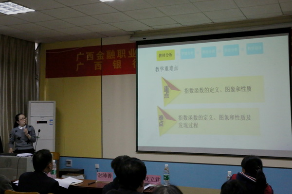 颁奖典礼上,教务科研处副处长李琪宣读了获奖名单,沈立君院长、谢沛善副院长、李琪副处长分别为获奖教师进行颁奖。高职组一等奖获得者盘秀兰老师、中职组一等奖获得者刘一老师代表参赛教师进行现场说课。盘秀兰老师针对教材内容进行说课,认为通过学习思想道德素质,让学生了解大学生活,从而更好地规划大学学习;刘一教师以指数函数为例,就如何引发学生学习兴趣,让学生投入到学习中去进行讲解。