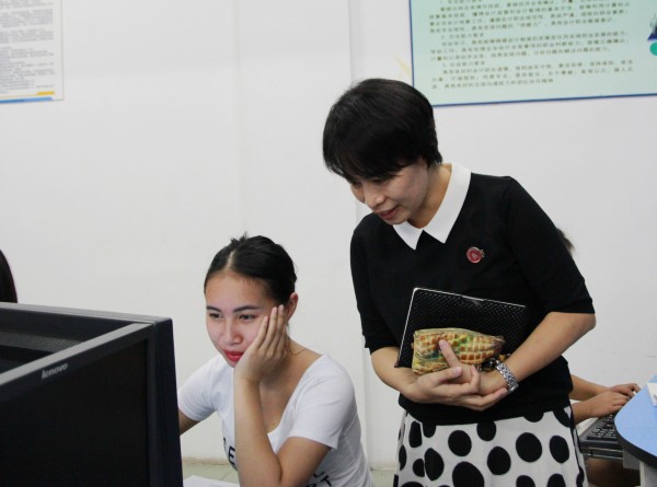 沈校长检查学生五笔录入技术