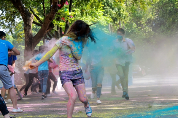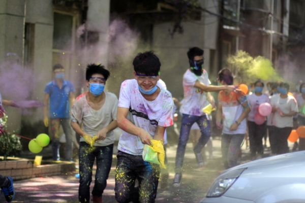 活动伊始,曾春妮老师强调“本次活动以娱乐为主,绕着校园奔跑一圈,想怎么玩就怎么玩,安全第一。”期间,学生穿着穿白色T恤、佩戴时尚眼镜、喷洒七彩玉米粉,你追我赶、相互嬉戏,现场气氛好不热闹。