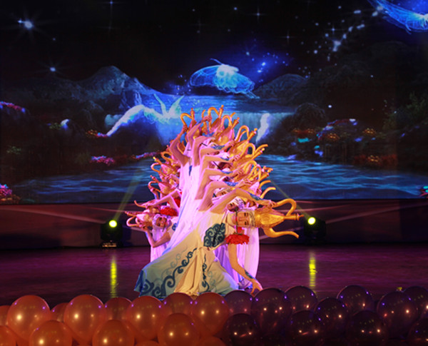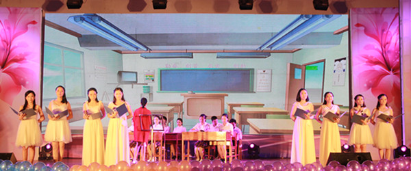 此次晚会分为节目表演、比赛回顾及颁奖三个环节。晚会舞台布置精美,大屏幕LED显示屏成了一大亮点。在节目表演环节中,高职会计1504班带来的歌曲合唱振奋人心,表达了学生的爱校热情和拼搏精神;礼仪队的同学们以良好的精神风貌和优美的仪态为观众展示了站姿、坐姿、走姿、蹲姿等日常礼仪;辅导员老师们带来的诗歌朗诵以清新的表现形式展现了师生之情,感人至深;情景剧《人生》以简洁明了的表现手法表达了人生不同阶段的酸甜苦辣,发人深思;舞蹈节目《金色汤瓶》以独特的服装造型和轻盈曼妙的舞姿演绎了异域风情,将整场晚会推向了高潮。除此之外,还有在文化艺术节比赛中获奖的同学带来的原创歌曲弹唱、书法展示、独唱以及现代舞等节目。绚丽多变的舞台背景加上演员们的精彩表演,吸引了在场所有观众的眼球,现场掌声、欢呼声一浪高过一浪。