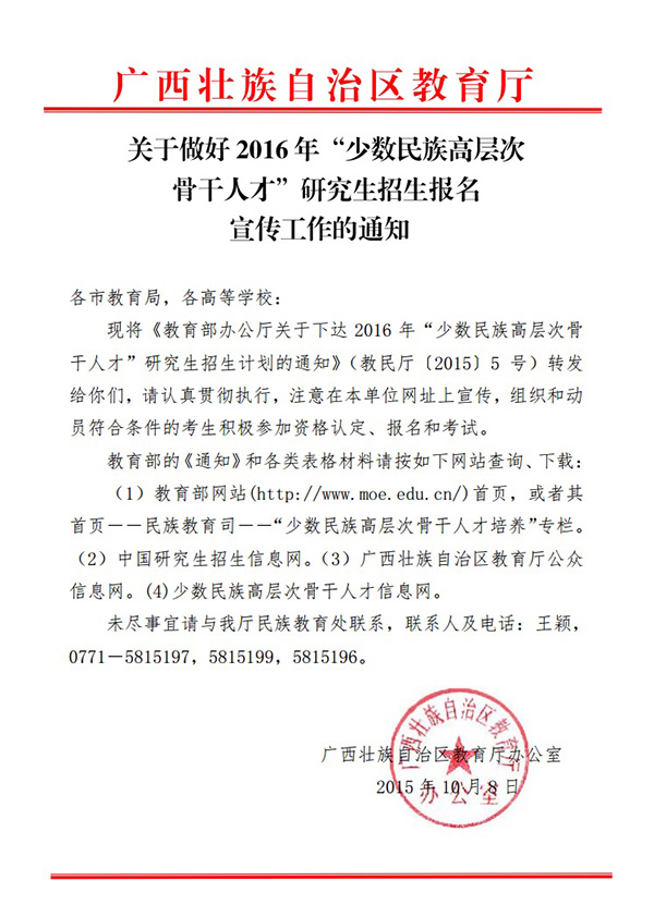 关于做好2016年“少数民族高层次骨干人才”研究生招生报名宣传工作的通知