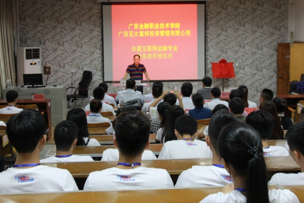广西首个互联网金融班的顺利开班,对学院来说是一件里程碑式的事件,极大地推动了学院校企合作工作的开展。双方领导在仪式结束时都发表了祈愿合作顺利及深入开展的愿景。