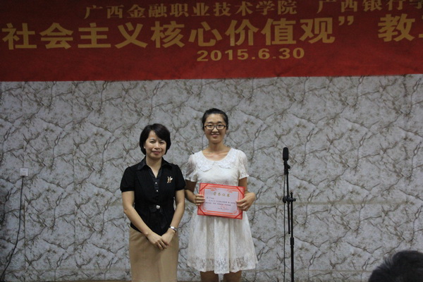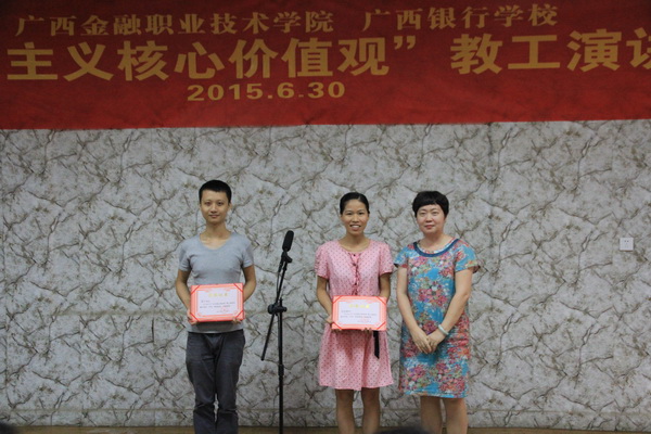 经过选手们的精彩演讲,最后评出了一等奖1名,二等奖2名,三等奖3名和优秀奖6名。学院领导为各位参赛选手颁发了荣誉证书。院领导希望大家以本次活动为契机,按照社会主义核心价值观这一要求,身体力行,模范实践,不断增强事业心与责任感,激发爱岗敬业热情,努力促进自身素质的发展与提高,坚持科学发展观,求真务实,团结一致,开拓进取,在造梦、筑梦和圆梦的道路上不断传递正能量,为学校的改革发展建功立业,作出新的贡献。