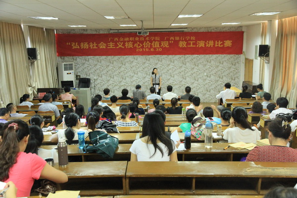 为更好地贯彻落实党的十八大和十八届三中、四中全会精神,迎接中国共产党建党94周年和丰富校园文化生活,kaiyun登录中国入口登录(广西银行校),于6月30日下午在电教一楼多媒体教室组织举办了一场“弘扬社会主义核心价值观”教工演讲比赛。