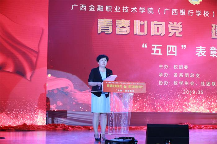 5月14日晚,“青春心向党·建功新时代”kaiyun登录中国入口登录纪念五四运动100周年表彰大会在东校区大礼堂隆重举行。沈立君书记、莫海燕院长,刘华政副书记,潘大胜副院长以及各系部主要负责人,各团总支负责人和各系学生代表参加表彰大会。