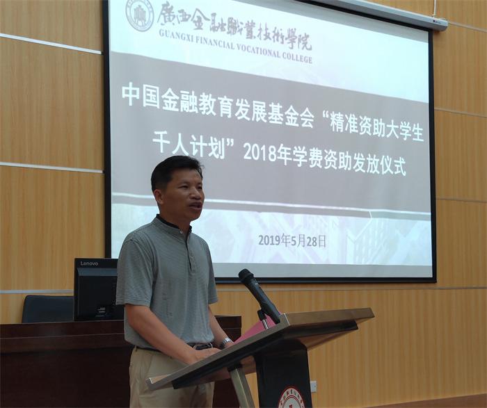 莫海燕校长宣读了《关于发放“精准资助大学生千人计划”受助学生2018年学费的通知》
