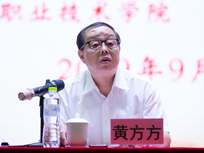 黄方方参事以“与祖国同行 放飞青春梦想”为题,以个人的读书工作为主线,讲述了共和国不同时期的发展历程。他指出,新中国成立以来的70年是改变中华民族前途命运的70年,是沿着民族复兴之路奋勇前行的70年。勉励全体师生要切实增强紧迫感,让勤奋学习成为青春远航的动力,让增长本领成为青春搏击的能量。同时,对同学们的人生成长提几点建议:一是要志存高远、坚定理想信念;二是要崇德修身、锤炼高尚品格;三是要勤奋学习、练就过硬本领;四是要自强创新、勇于奋斗进取;五是要服务人民、争做国家栋梁。