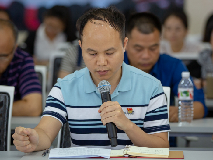 潘大胜副院长作《加强师德师风建设,争做新时代“四有”好老师》中心发言,他从有理想信念、有道德情操、有扎实学识、有仁爱之心四个方面诠释了新时代“四有”好老师的内涵,激励教师常存大爱之心、甘立树人之志、力行笃学之风、涵养为师之德,构建全校教师立德树人新局面,展现广大教职工爱岗敬业新风貌。