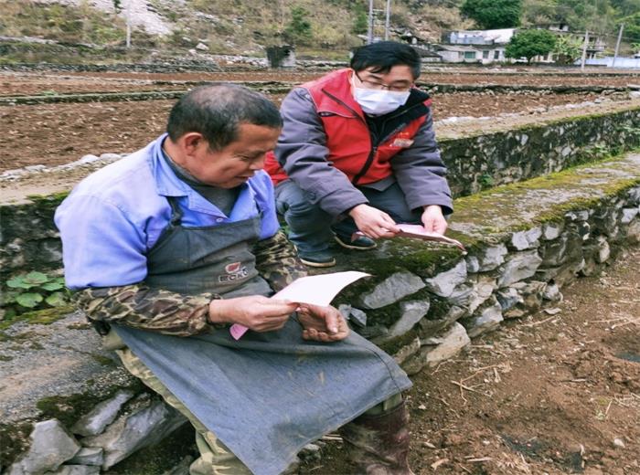 都安菁盛乡文华村驻村第一书记刘仁礼到田间为劳作的群众宣讲新冠肺炎预防注意事项