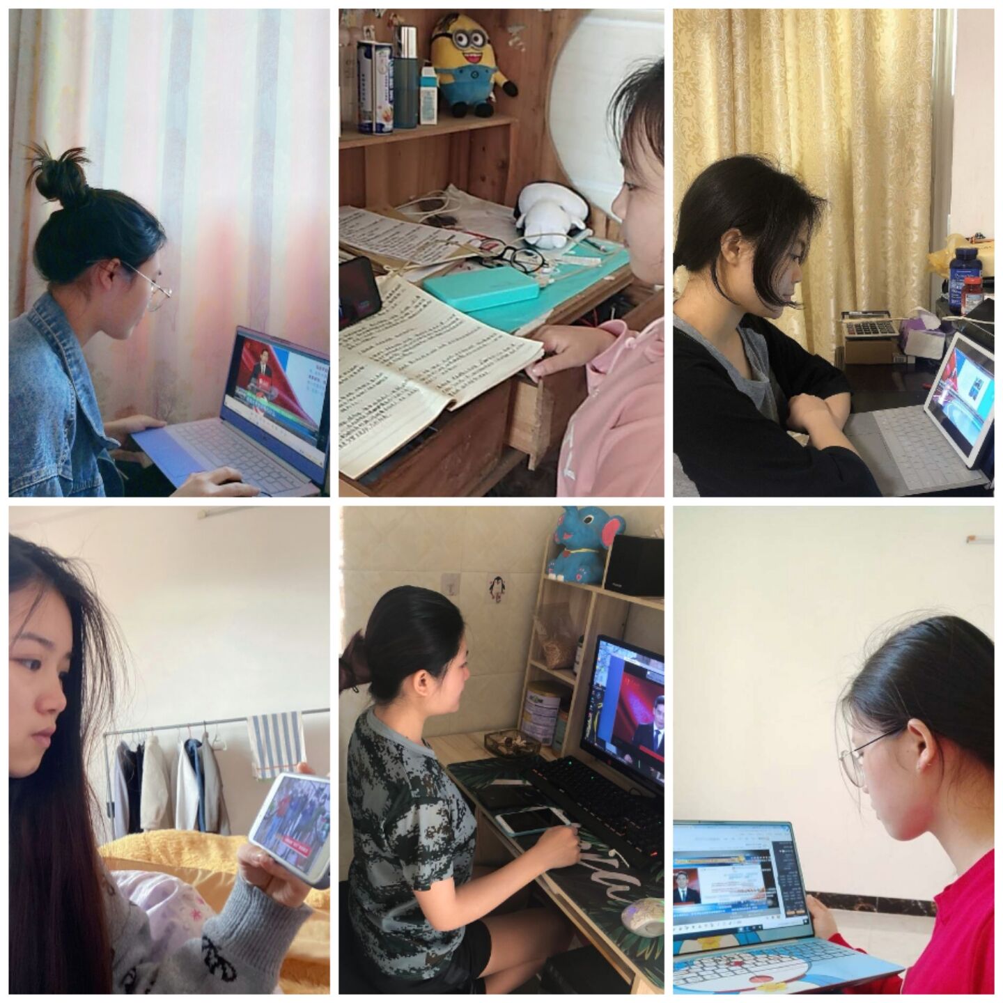 教师在家观看“全国大学生同上一堂疫情防控思政大课”视频公开课