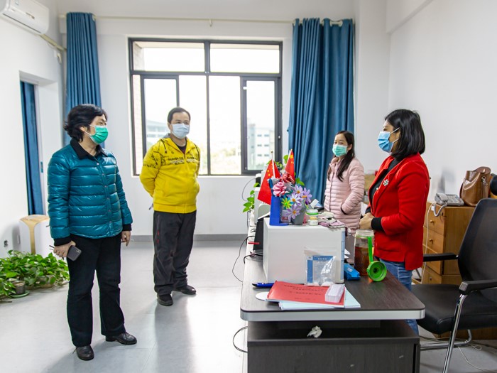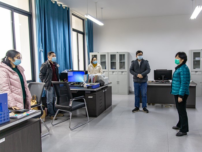 4月1日上午,kaiyun登录中国入口登录(kaiyun登录中国入口登录)部分教职员工正式返校到岗上班。学校党委书记沈立君带队走访各部门办公室,了解返校第一天工作进展并慰问在岗教职员工。党政办公室、组织人事处相关工作人员一同参加走访。