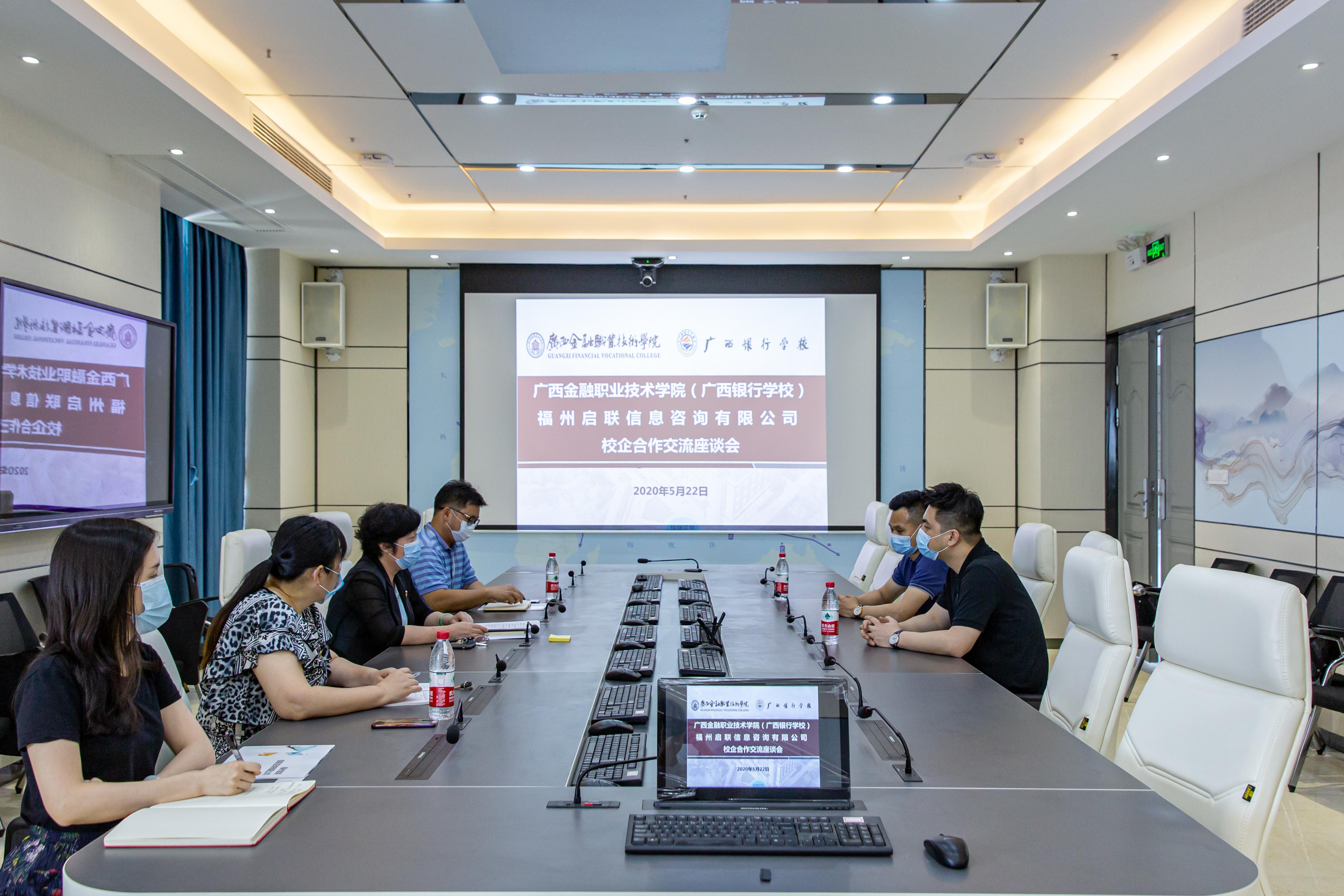 5月22日下午,启联信息咨询有限公司到访kaiyun官网,党委书记沈立君及党政办公室、旅游管理系主要负责人在西校区“一带一路”会议室接待了总经理张龙辉一行,双方就校企合作相关事宜进行了座谈。