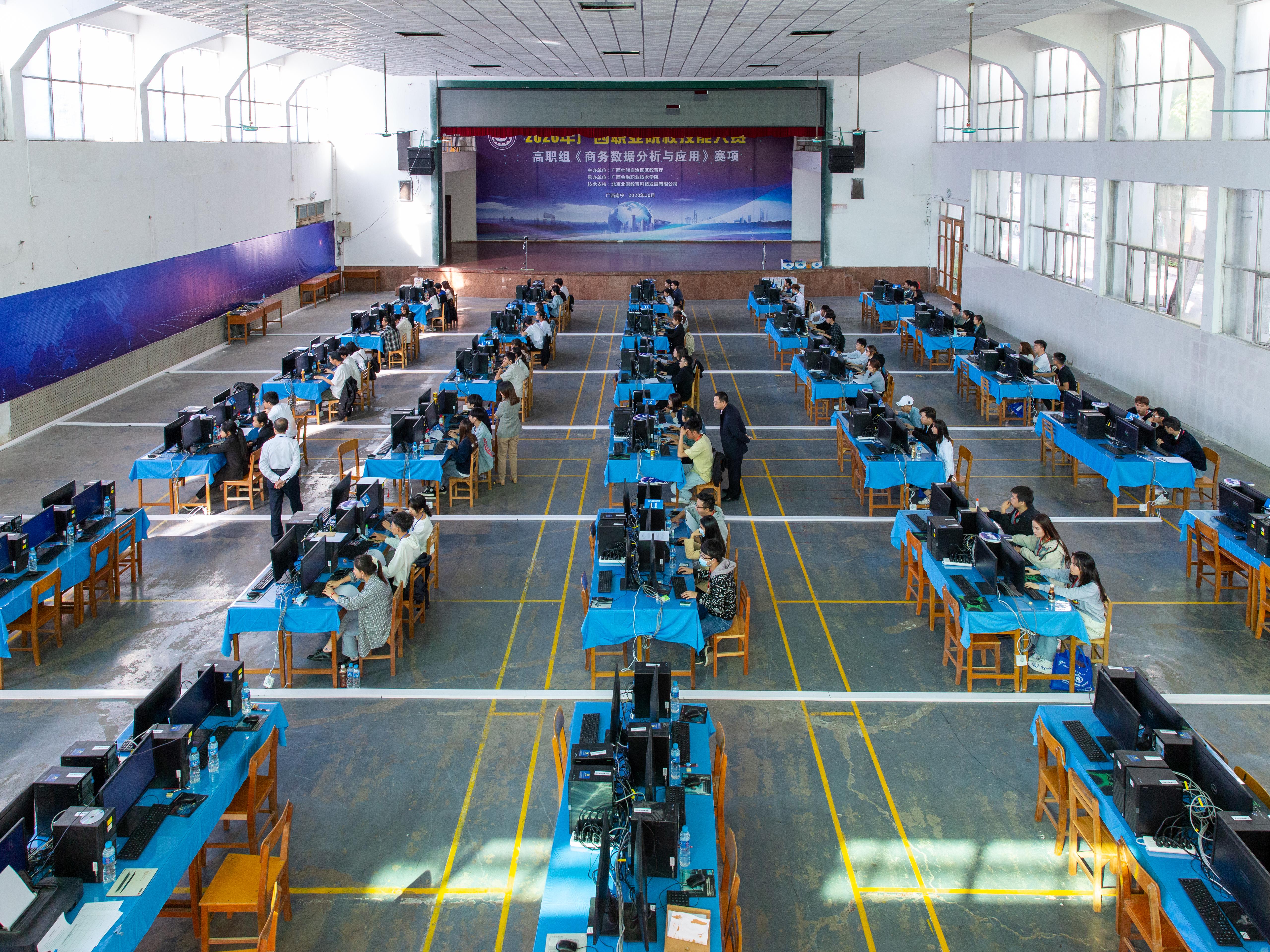 10月23日上午,由自治区教育厅主办,kaiyun官网承办的2020年广西职业院校技能大赛高职组《商务数据分析与应用》赛项在kaiyun官网东校区足球场隆重举行。学院院长莫海燕、北京北测数字技术有限公司商务数据分析项目总监王焱总监以及来自全区14所高职院校,25支参赛队的100名选手和指导老师、赛项裁判组成员参加了开幕式。