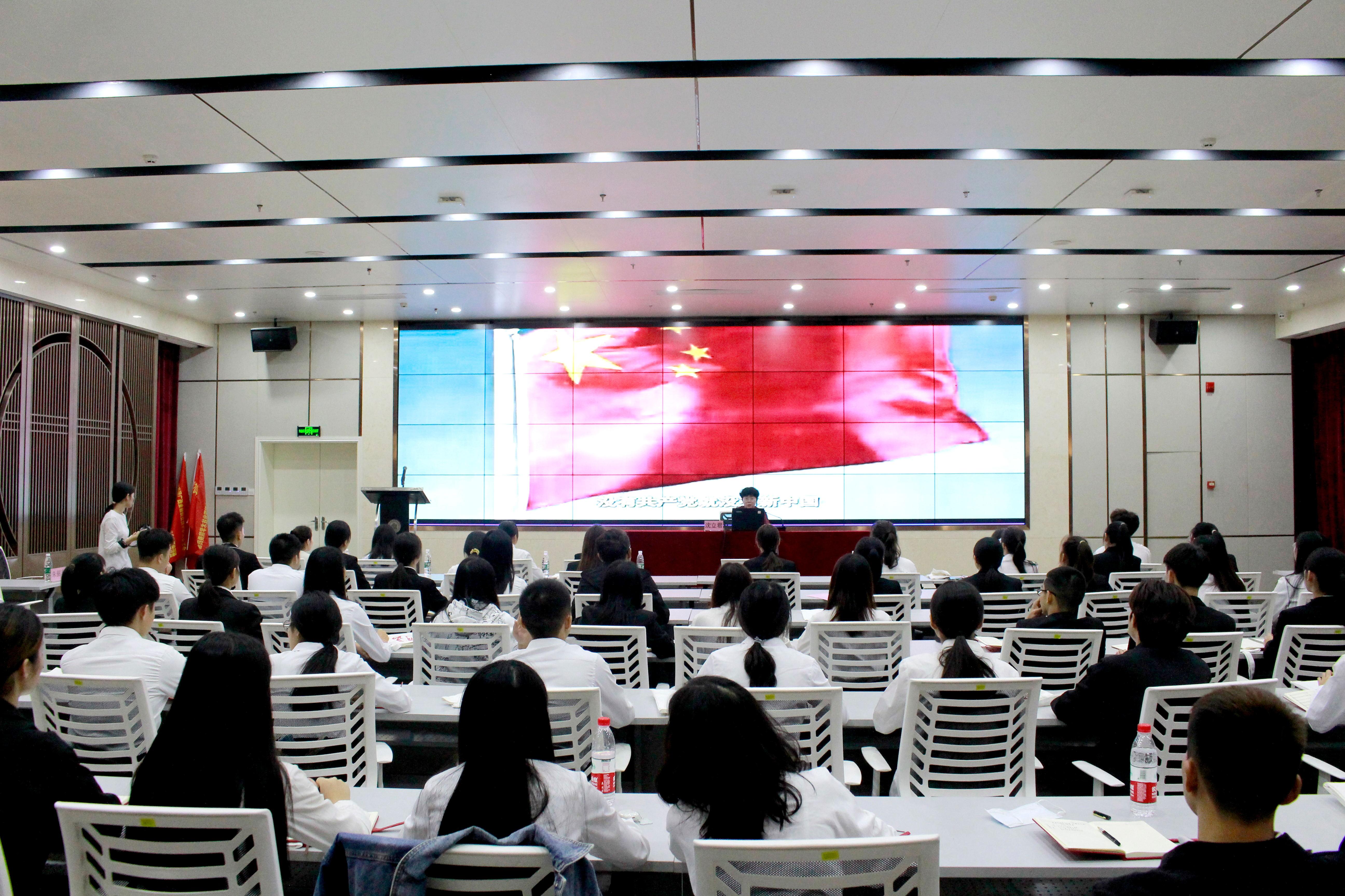 沈立君书记以《没有共产党就没有新中国》这首歌曲为切入点,运用生动的视频资料向同学们阐述典型历史事件背后故事,让同学们深刻的了解中国共产党波澜壮阔、艰苦卓绝、胜利辉煌的奋斗历程。