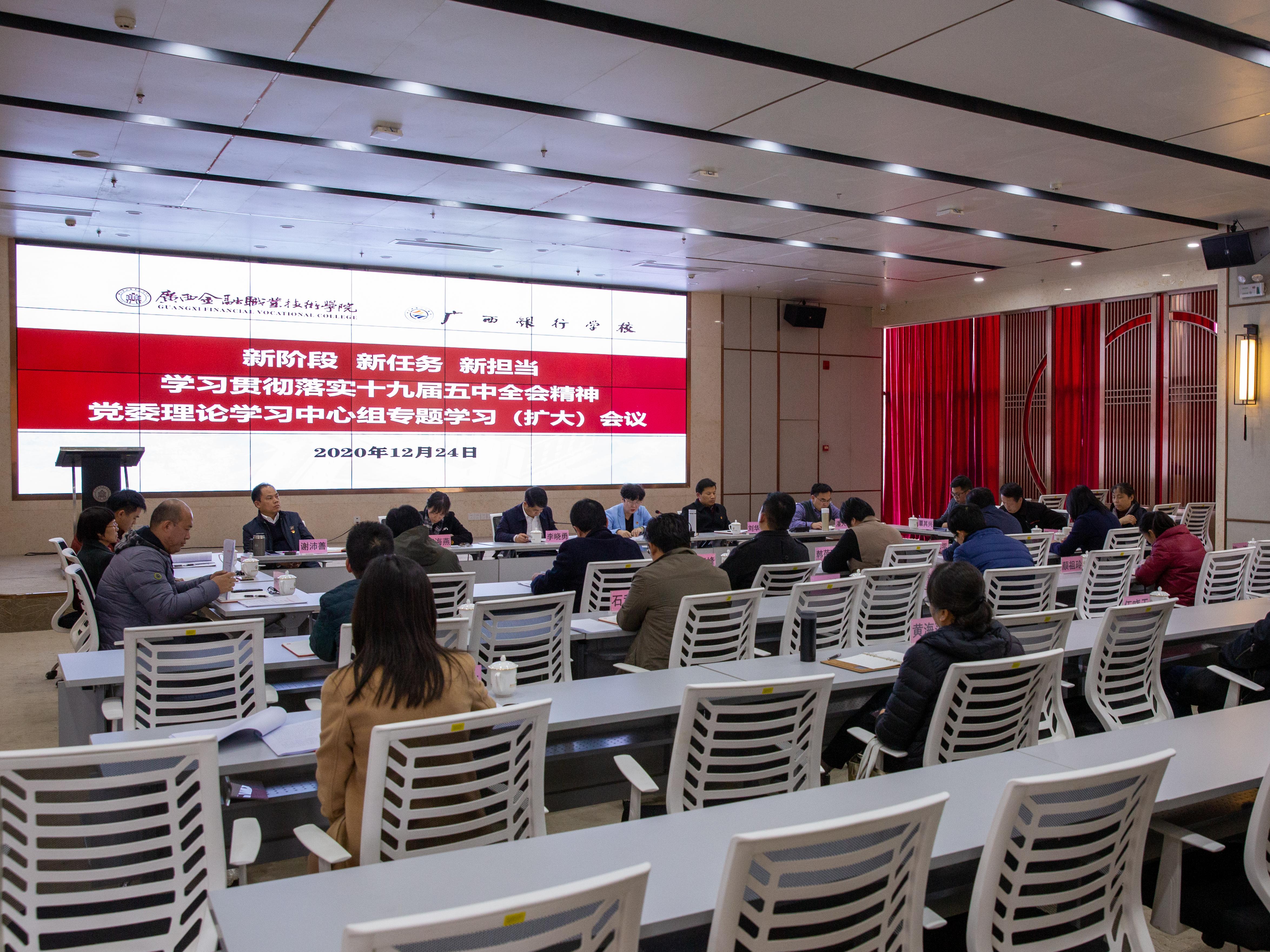 12月24日,kaiyun官网党委理论学习中心组2020年第七次专题学习(扩大)会在西校区道德大讲堂召开,本次学习的主题是:新阶段 新任务 新担当——学习贯彻落实党的十九届五中全会精神。自治区党委教育工委专职副书记、自治区教育厅党组成员李晓勇同志到场巡听旁听,学校党委理论学习中心组成员、非党员校领导、各党支部书记、各单位主要负责人参加会议,会议由党委书记沈立君主持。