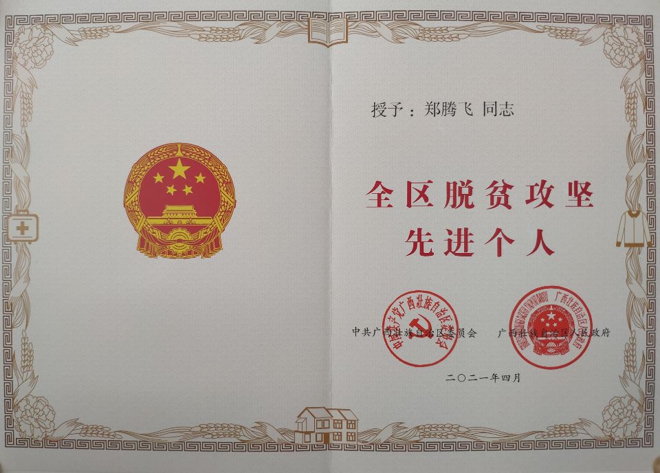 近日,kaiyun官网郑腾飞同志被自治区党委、政府授予“全区脱贫攻坚先进个人”荣誉称号。