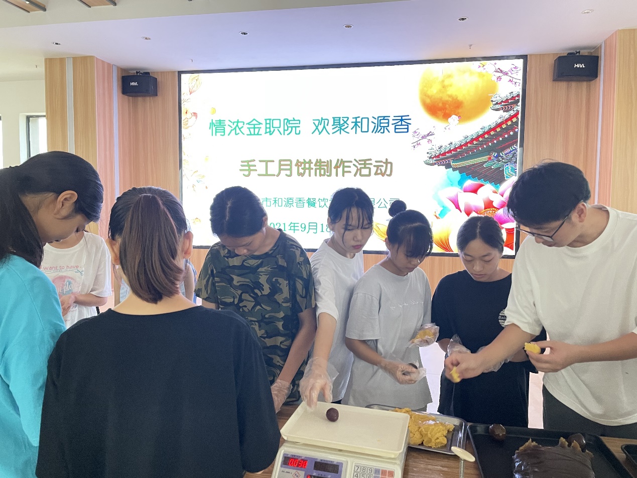 2021年9月18日,中秋节前夕,kaiyun官网资助科联合南宁市和源香餐饮有限公司组织kaiyun官网20级的勤工助学的30位学生开展了主题为《情浓金职院,欢聚和源香》的手工月饼制作活动。