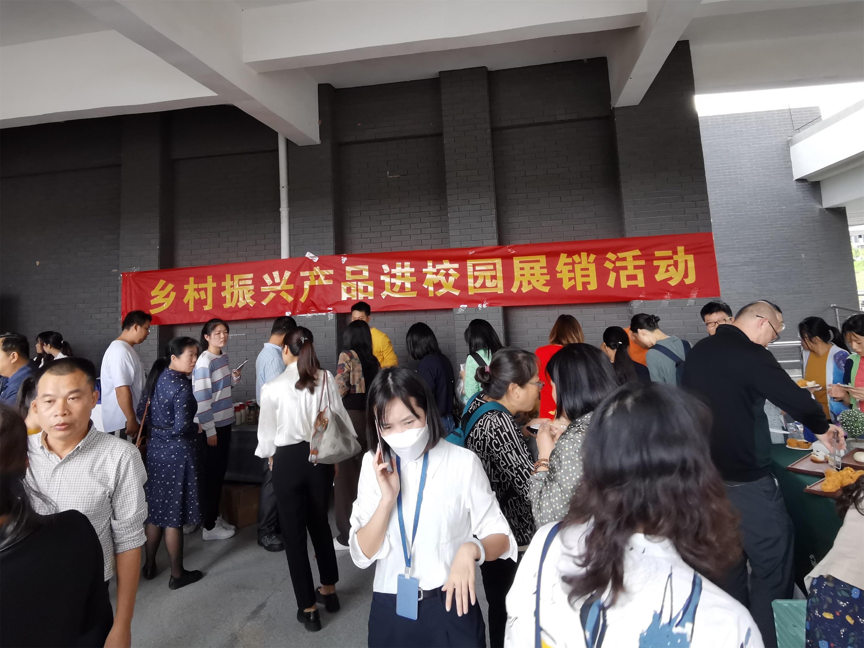 本次活动在工会及直属第六党支部牵头下,通过展销广西区内乡村振兴产品,支持乡村产业振兴的同时为教职工提供健康食品。学院乡村振兴超市联合都安桂合泉、广西农投、宏桂集团下融桂公司等多家企业助农产品,活动上有土猪排骨、三年酿晒酱油、都安手工面、都安牛肉、手锤油茶、都安牛肉手工饺子、北海渔民巴沙鱼都段、鱿鱼须、墨鱼仔、牛肉丸、麻辣香肠等丰富产品展销,产品吸引了广大师生踊跃品尝与订购。