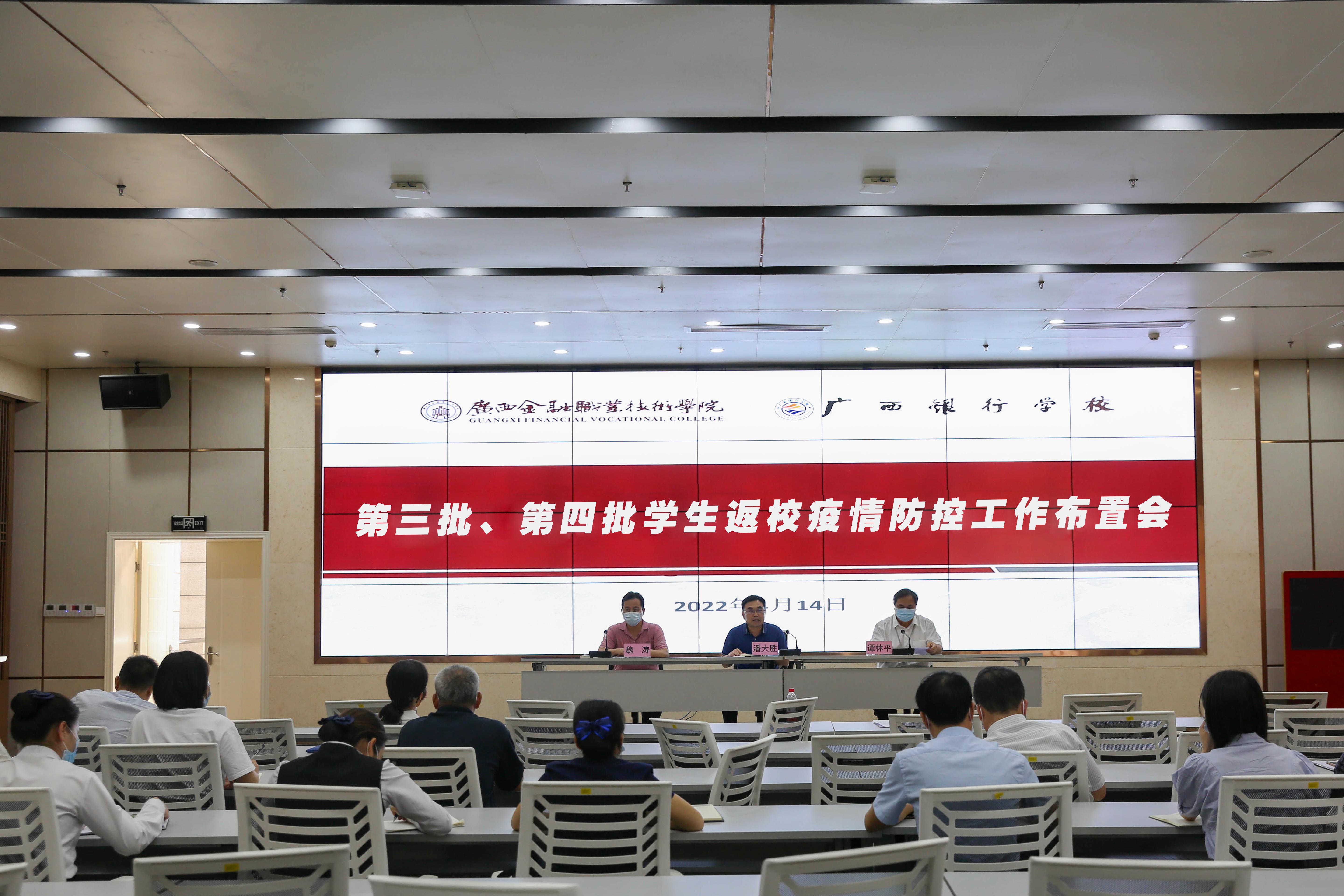4月14日下午,为进一步做好kaiyun官网疫情防控工作,保障学校第三批、第四批学生有序返校,学校在西校区道德大讲堂召开第三批、第四批学生返校工作布置会。学校党委委员、纪委委员、各党支部委员、校团委委员、校团委各工作部负责人、学校领导、各单位负责人、学生返校疫情专班工作组成员、物业食堂负责人参加了会议。会议由副院长潘大胜主持。