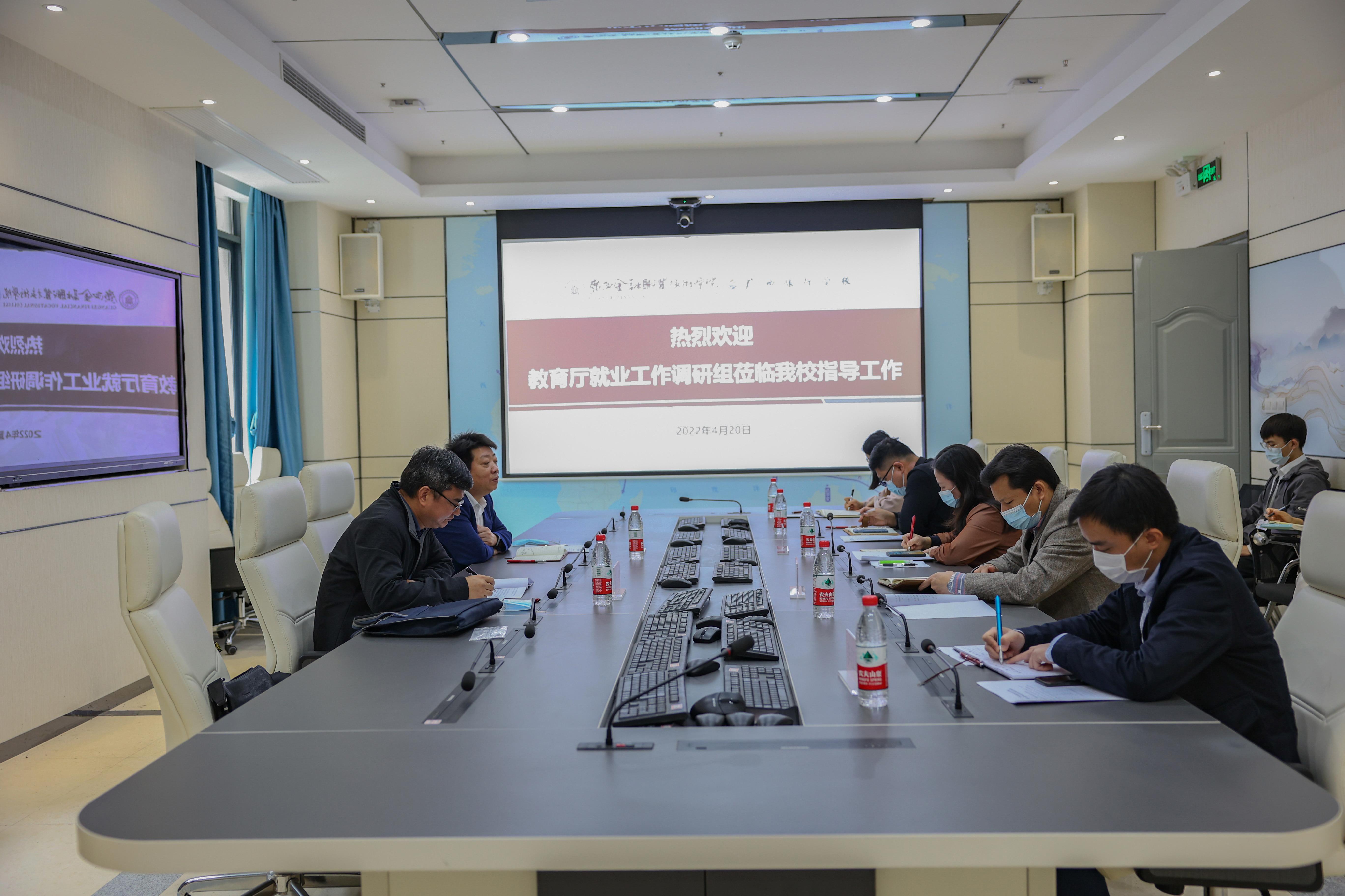 4月20日上午,由自治区教育厅副厅长伍春辉,就业创业指导中心副主任吴大平组成的调研组到kaiyun官网开展就业调研工作,对kaiyun官网学生就业工作进行督查和指导。学校校长莫海燕、党委副书记、纪委书记刘华政,各系学生专干及招生就业科相关人员参加座谈交流会。