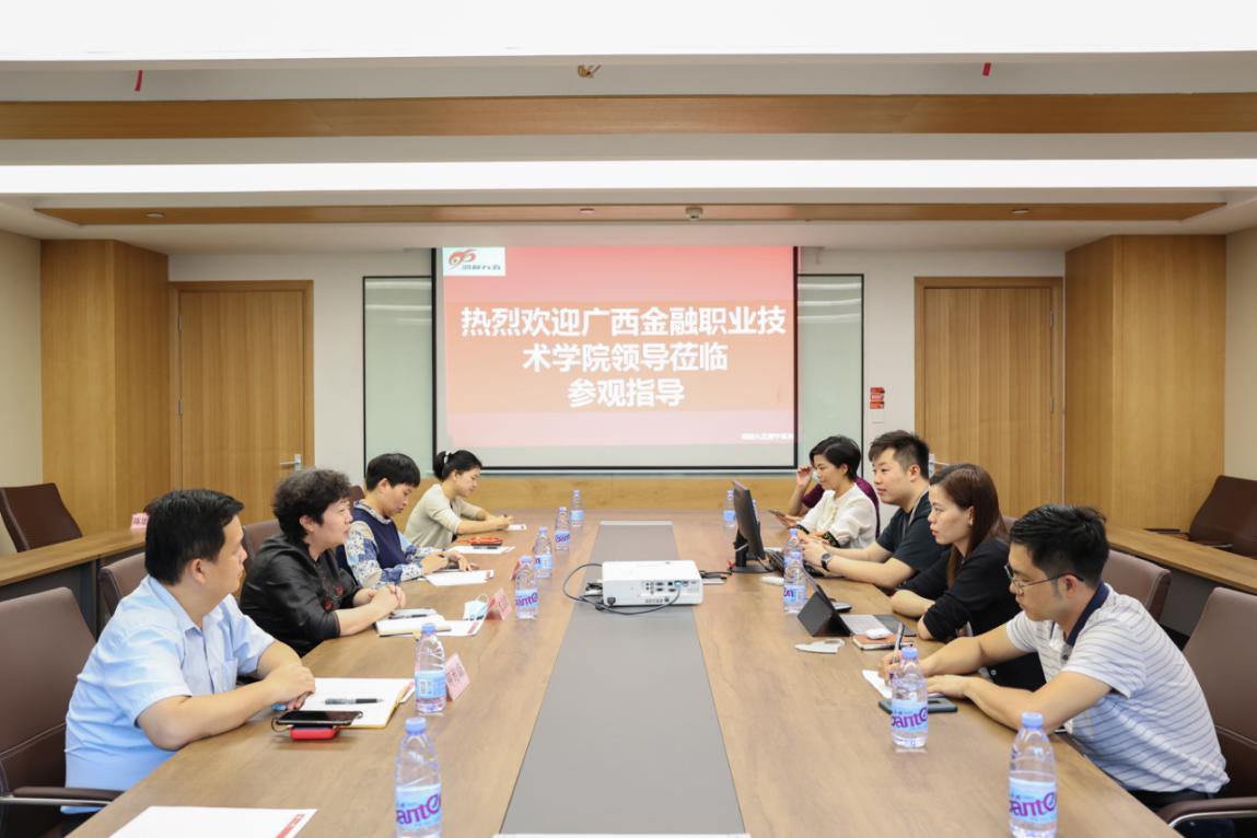 鸿联九五人力资源校企合作总监谭娟、广西分公司总经理高玉标、广西淳中科技有限公司副总经理闭思源等热情接待了沈书记一行。座谈会上,谭总通过宣传片对公司背景、基本情况、发展规划等进行了介绍,表达了人才需求意愿和未来合作意向,希望通过“一校一策”的方式,与学校进行校企深度融合。