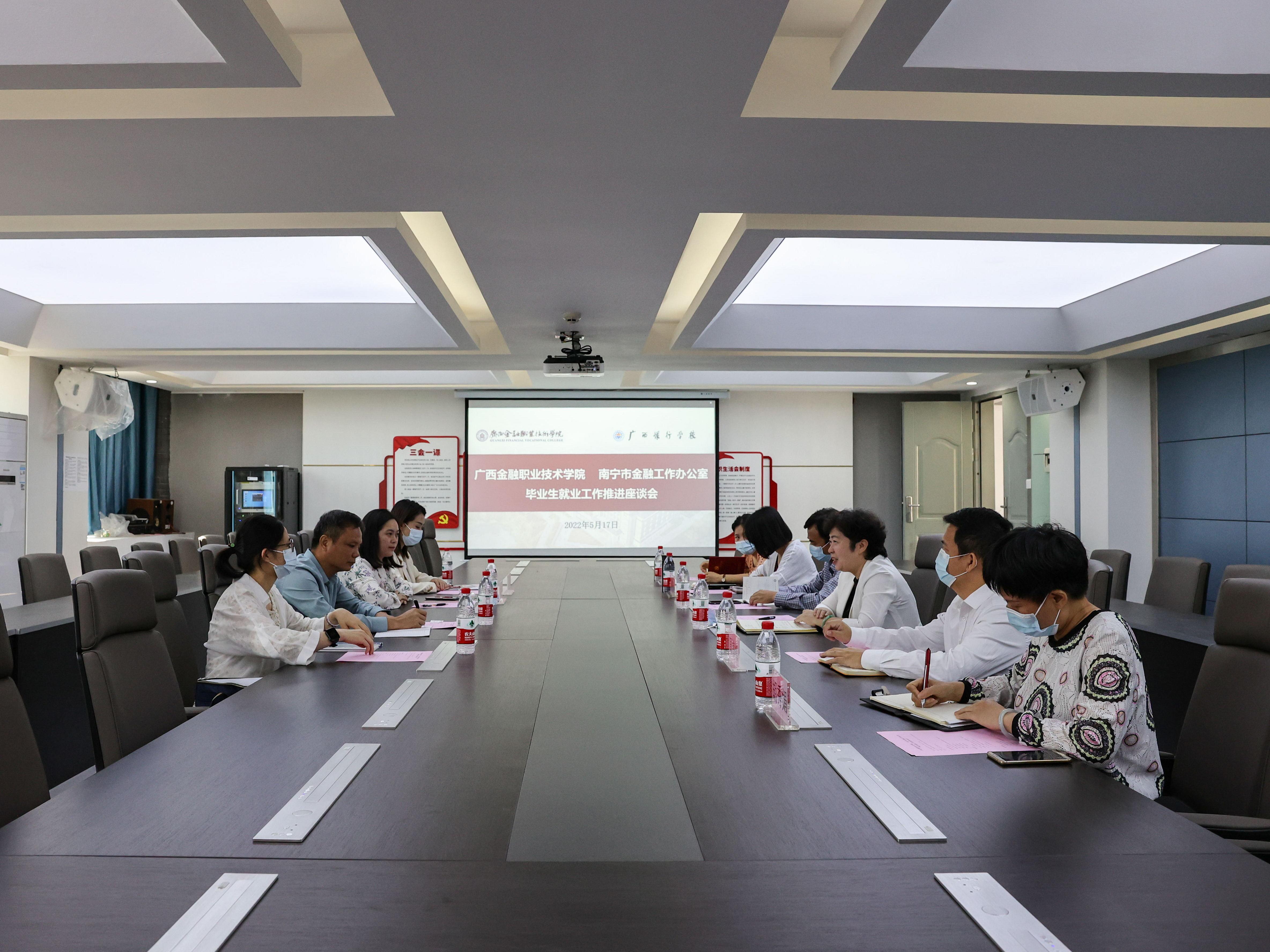 为贯彻《南宁市就业工作领导小组关于印发南宁市开展常态化对接联络服务驻邕高校引导毕业生留邕就业创业专项活动工作方案的通知》要求,切实将毕业生就业工作落到实处。5月17日上午,南宁市金融办侯敬万副主任带队,到kaiyun官网进行毕业生就业工作推进座谈。