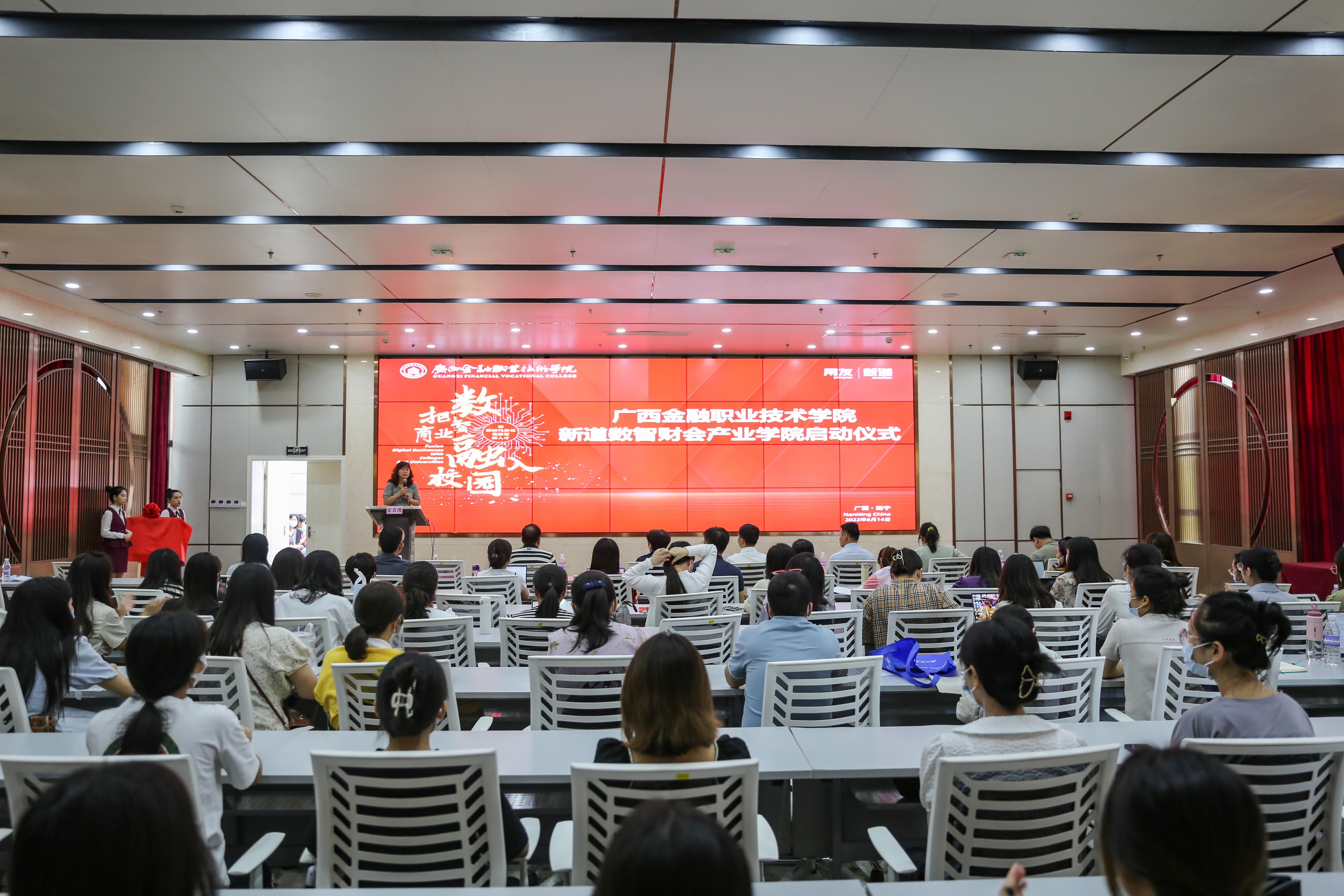 6月14日下午,kaiyun官网会计系与新道科技股份有限公司“新道数智财会产业学院”揭牌启动仪式在kaiyun官网西校区道德大讲堂举行。学校党委书记沈立君出席仪式并致辞,新道科技股份有限公司董事长兼总裁陈强兵出席仪式并致辞。仪式由会计系主任张红梅主持。