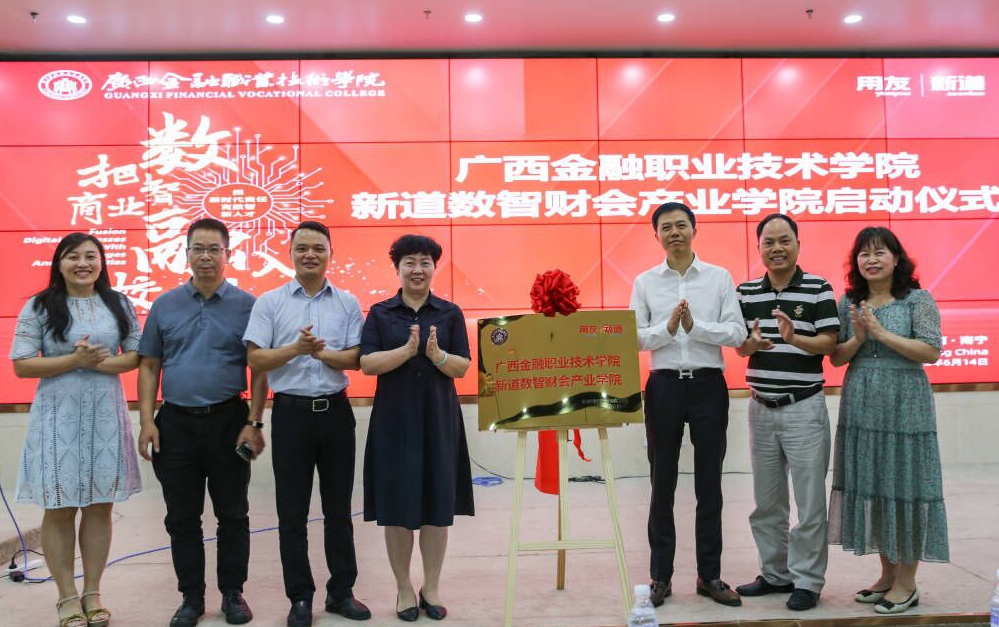 “新道数智财会产业学院”揭牌并合影留念