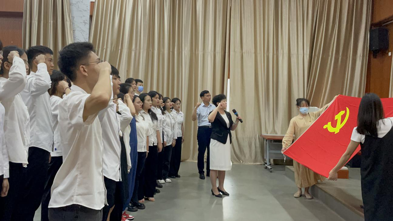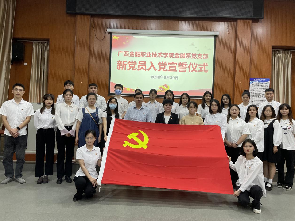 2022年6月30日,金融系党支部在学校2号教学楼报告厅举行了新党员入党宣誓仪式,37名新党员站在鲜红的党旗下集体宣誓。学校党委书记沈立君教授出席宣誓仪式并讲话,宣誓仪式由金融系党支部书记王清星主持。