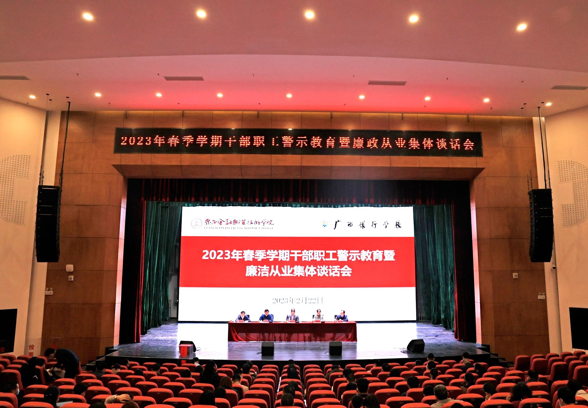 会上进行了警示教育暨廉政廉教集体谈话。党委副书记、纪委书记刘华政从通报案例、重温规范、廉洁要求等三个方面开展警示教育,通报了8起违法违纪案例,并强调我们要以案明纪,守好防线;要讲政治,提高站位;坚定信念,永葆本色;切实履职,转变作风;强化师德,为人师表。