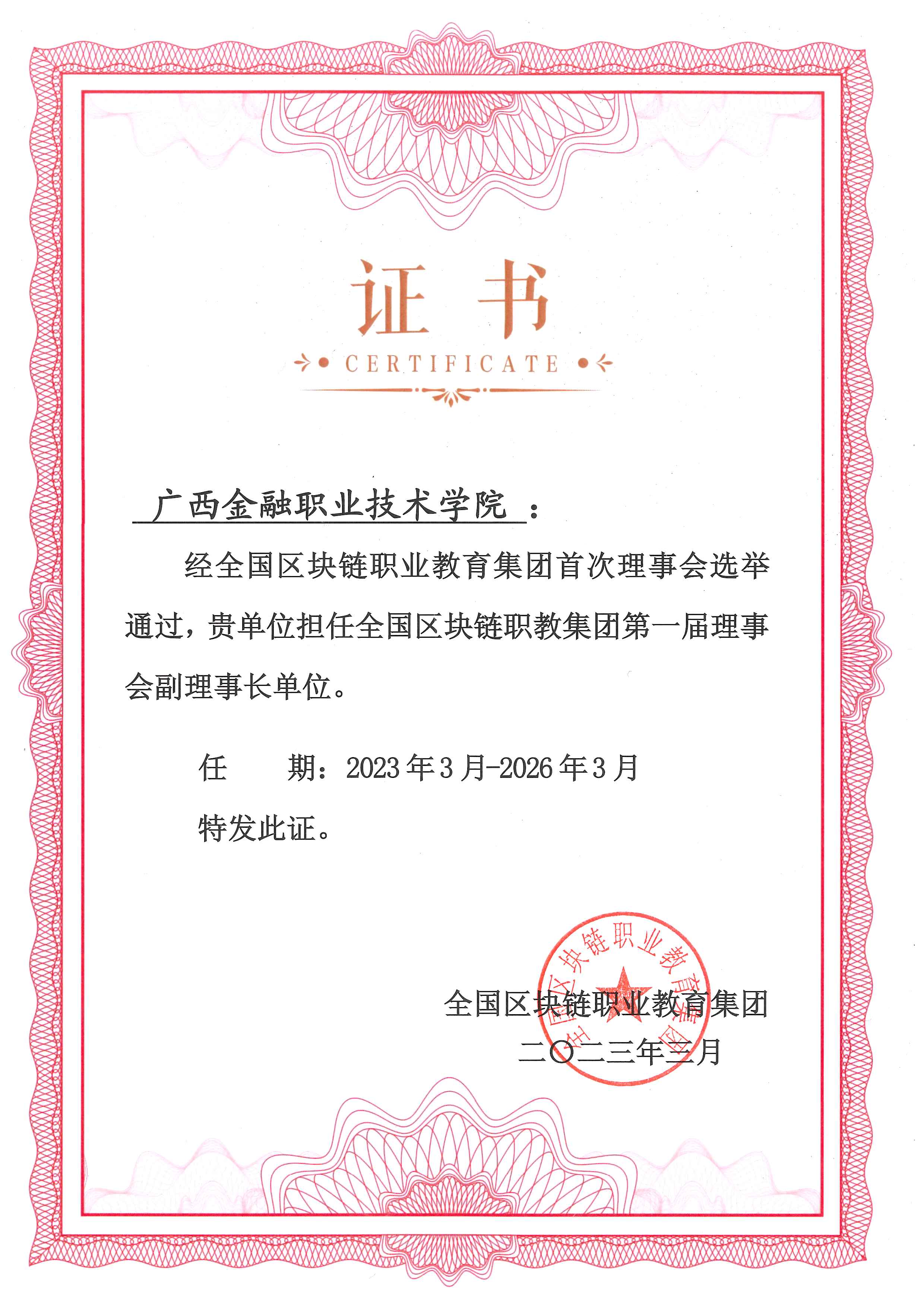 2023年3月3日至4日,全国区块链职业教育集团成立大会暨首届中国区块链教育高端峰会在广州白云国际会议中心顺利举行。kaiyun官网在大会上成功当选为副理事长单位。