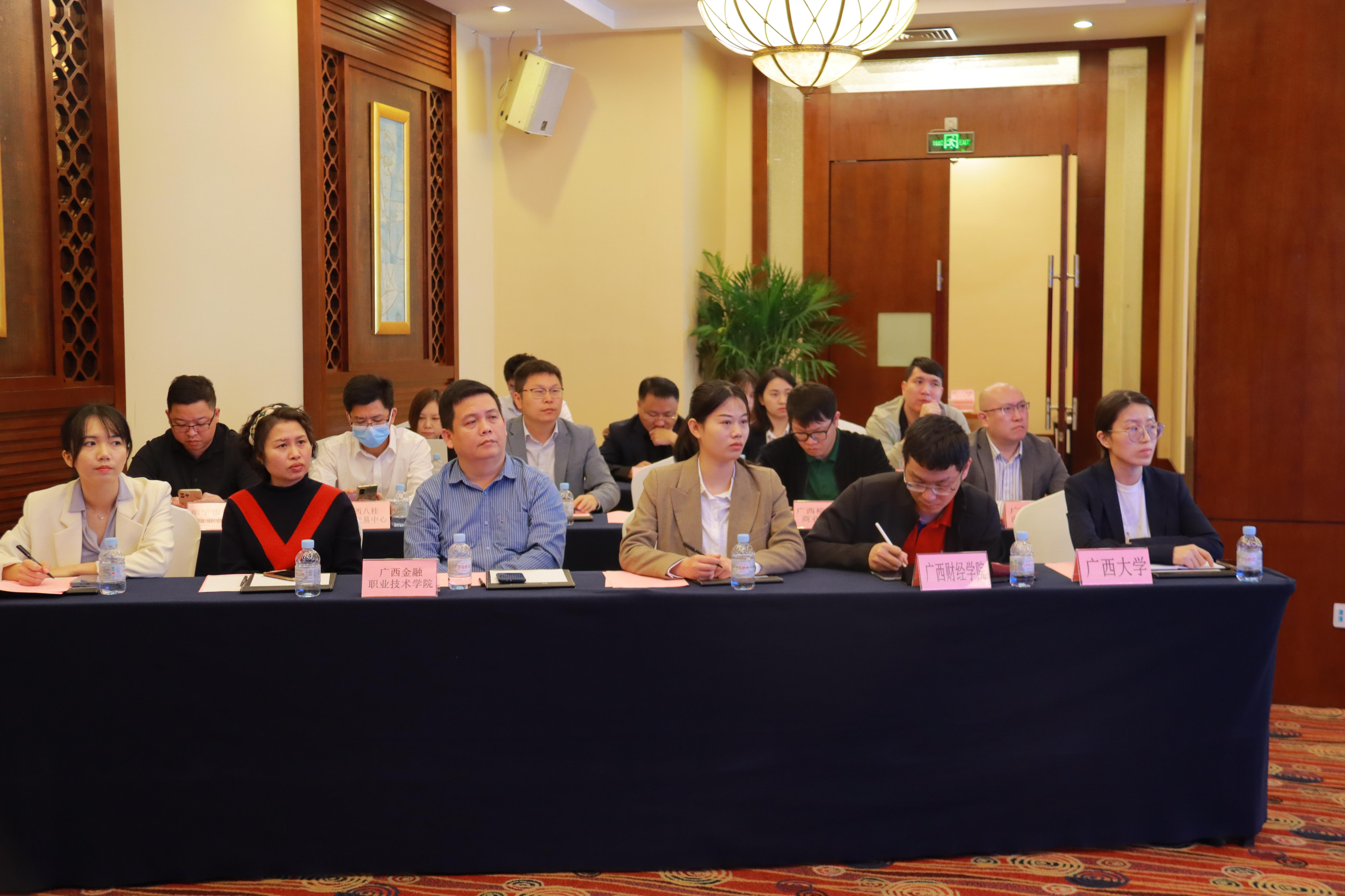 参加此次会议的还有中国银行南宁分行、建设银行广西分行、中信银行南宁分行、民生银行南宁分行、光大银行南宁分行、兴业银行南宁分行、广西北部湾银行、桂林银行、柳州银行等42家驻邕金融机构,第二期南宁市急需紧缺金融人才培养项目18家单位以及广西大学、广西财经学院、kaiyun登录中国入口登录三家高校代表人员