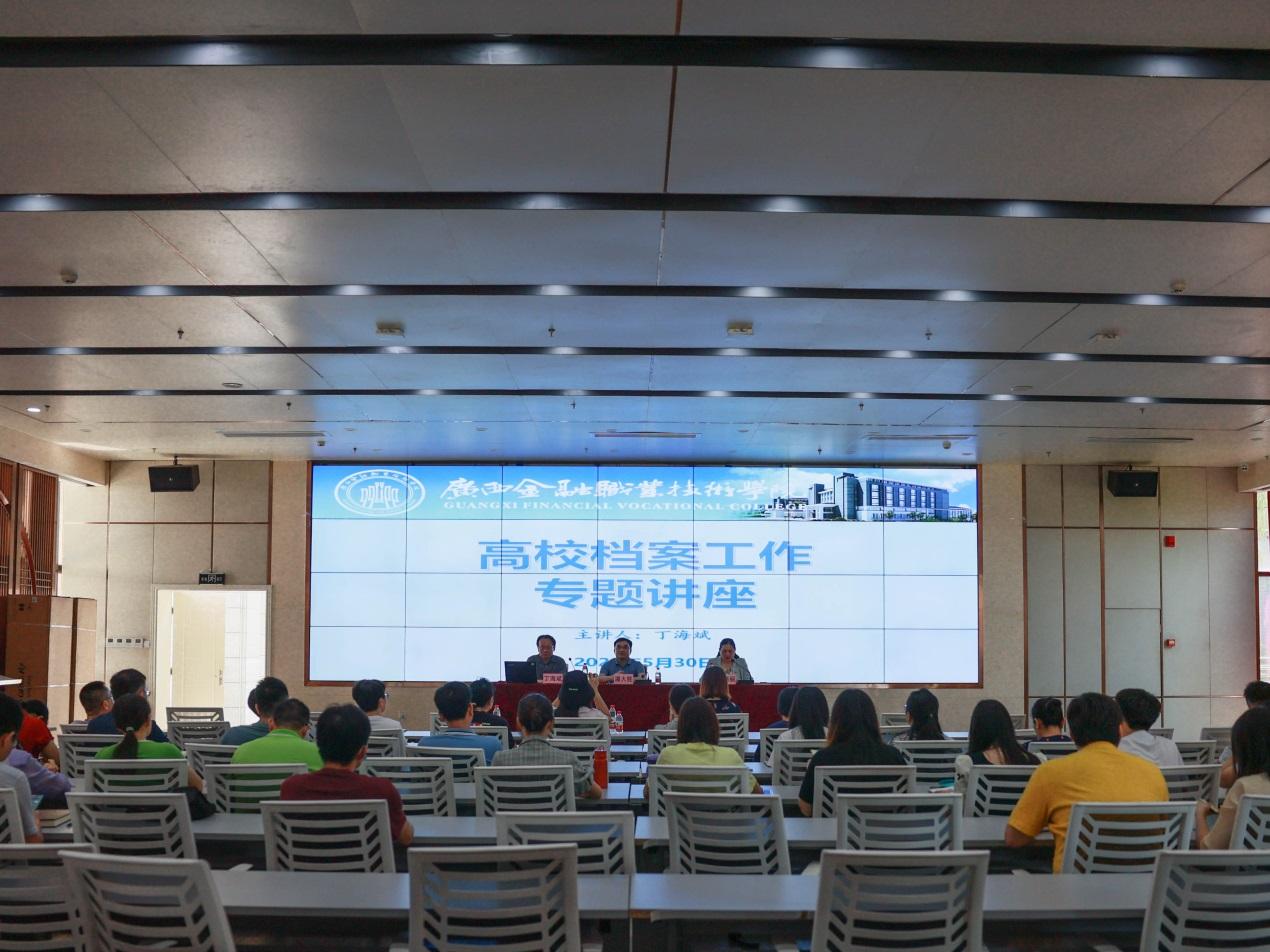 为了进一步加强kaiyun官网档案管理工作,推动档案工作规范化开展,更好地服务于学校的建设发展目标及中心工作。5月30日,kaiyun官网举办档案工作专题讲座,特邀请广西民族大学管理学院二级教授,博士生导师,国家级档案专家领军人才丁海斌教授到kaiyun官网作“如何做好数字时代的高校档案工作”的专题讲座。kaiyun官网副院长潘大胜,各单位负责人、档案管理员、行政工作人员、各系(部)行政秘书、教学秘书参加了培训,党委委员、党政办公室(国际交流处)副处长、党委宣传部副部长韩蓓丽主持会议。