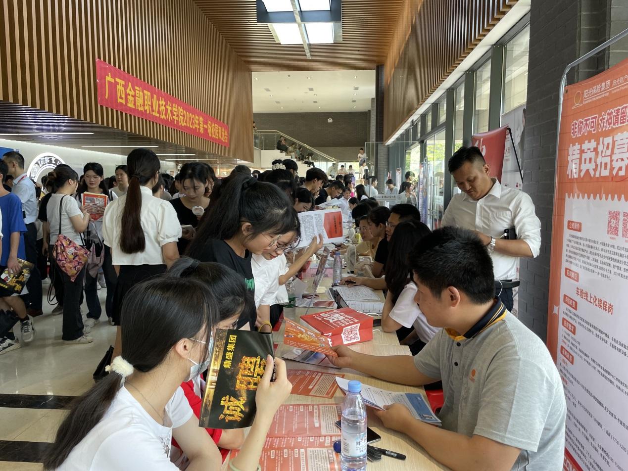本次招聘会共吸引了来自省内外的50多家用人单位参会,其中有以阳光保险集团、鼎盛集团为代表的企业共计提供招聘岗位3421个。覆盖金融保险业、信息服务业、生物医药、批发零售业等诸多领域。招聘会现场,前来应聘的学生手持精心准备的简历,穿梭于各个招聘单位之中,详细了解企业的基本情况、招聘岗位及要求,并就实习安排、工作内容、薪资待遇、未来发展等方面与招聘人员进行互动交流,寻找心仪的岗位。