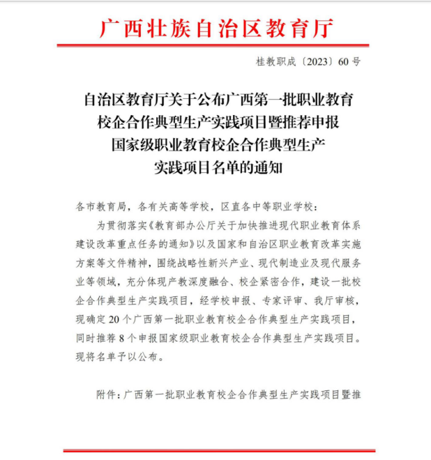 热烈祝贺kaiyun官网“RCEP数字贸易典型生产实践项目”成功入选广西第一批职业教育校企合作典型生产实践项目。