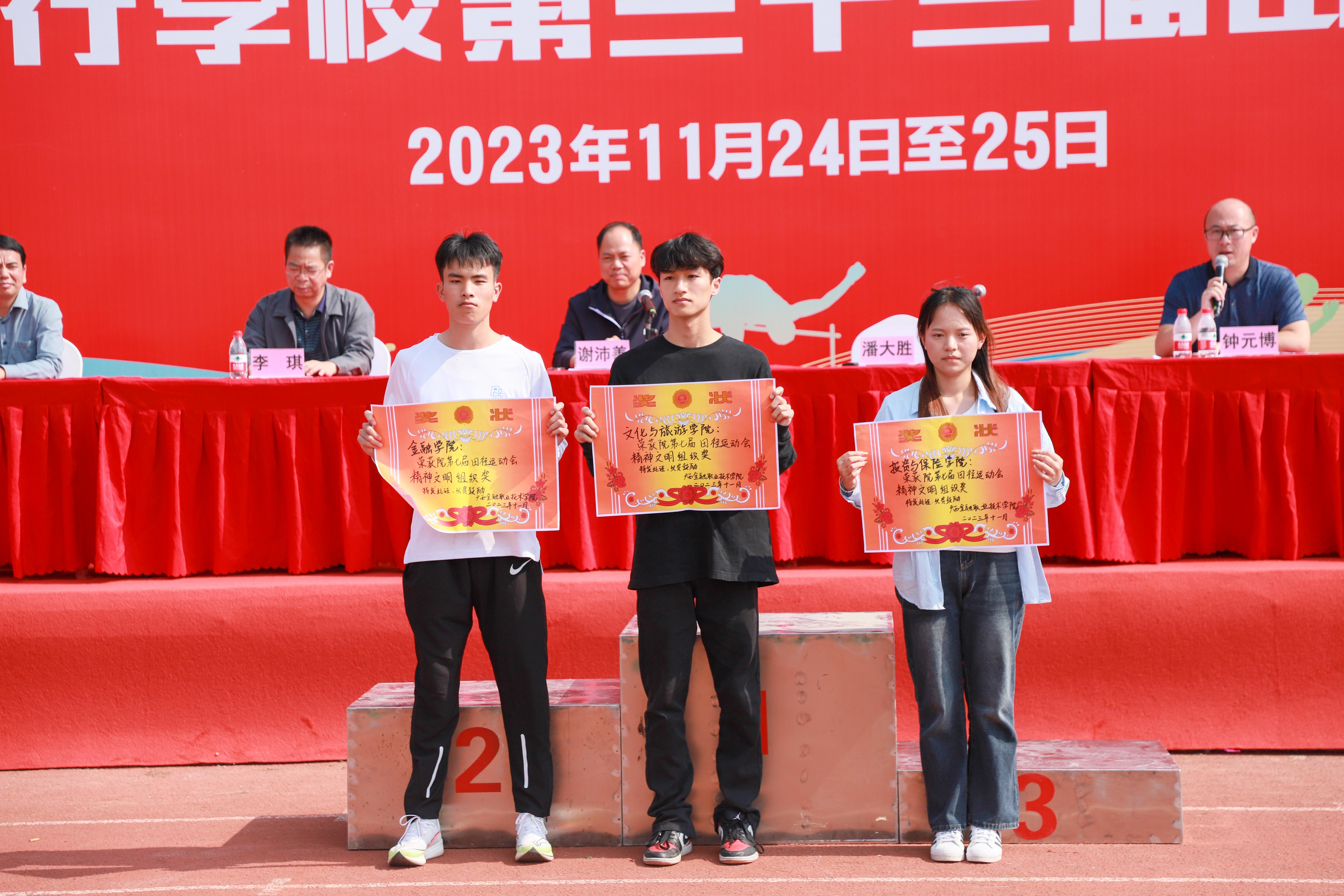11月25日,经过一天半运动员们的激烈拼搏,裁判员的公正判决及全体工作人员的共同努力,kaiyun登录中国入口登录第七届暨kaiyun登录中国入口登录第三十三届田径运动会顺利地完成了各项比赛项目,圆满落下帷幕。学校副校长谢沛善、潘大胜、教务科研处副处长李琪以及教学系部的主要负责同志参加闭幕式。闭幕式由大赛总裁判长,公共基础部副主任钟元博主持。