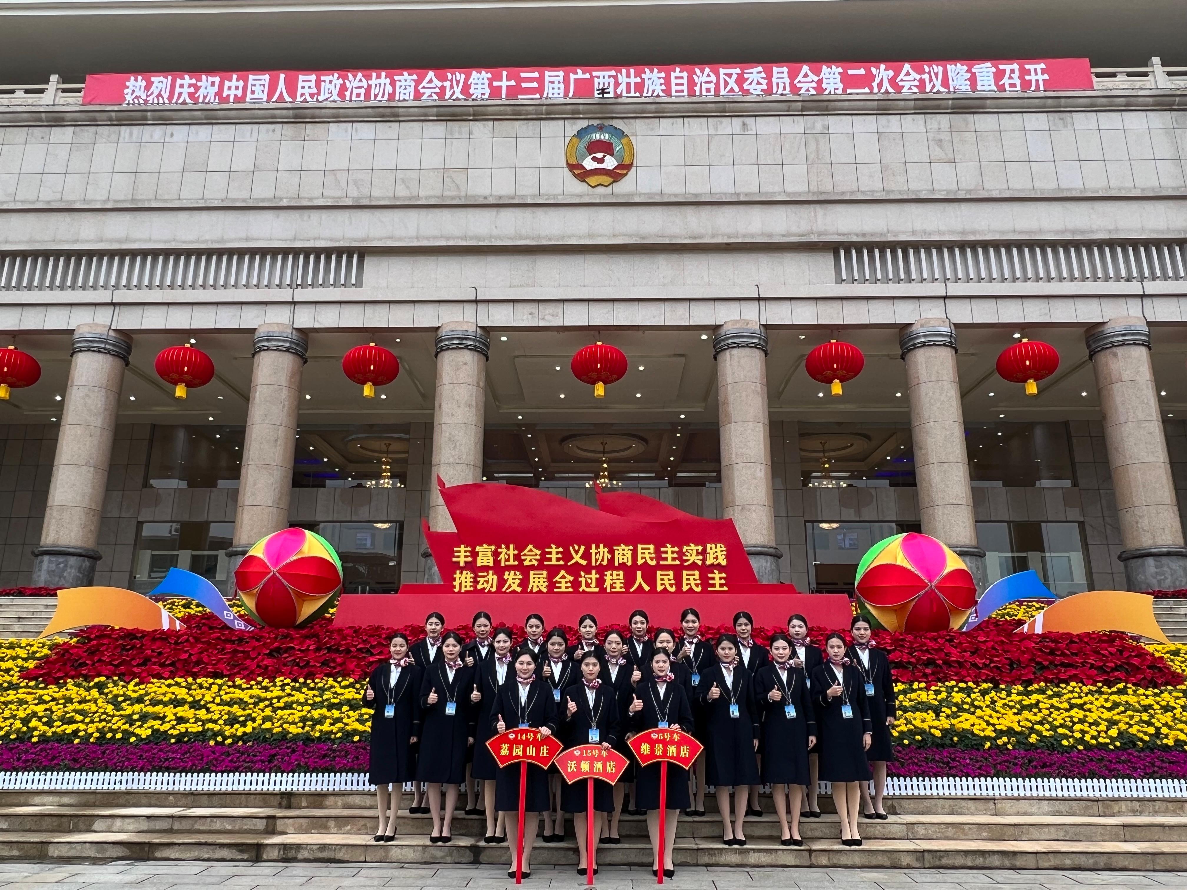 1月21日至25日,kaiyun官网学生分别在荔园山庄、荔园山庄维景酒店、沃顿酒店、裕达酒店提供会议用车的引导与礼宾服务。会议期间,kaiyun官网学生承担了发放座位表、引导政协委员入场等工作,他们严谨认真、态度积极,展示出饱满的精神状态和专业的服务水平。