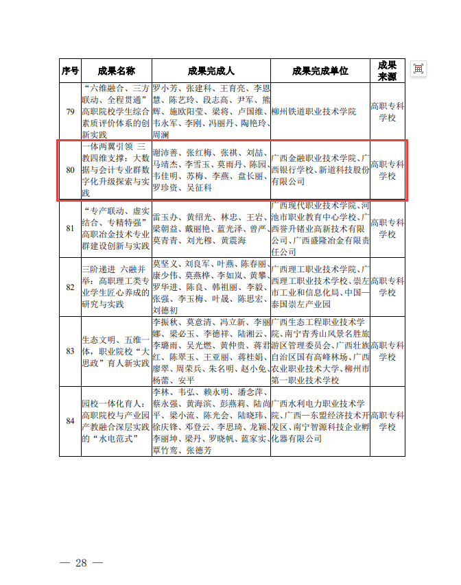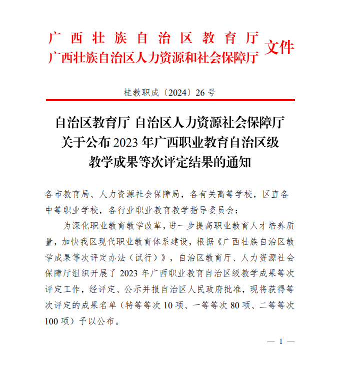 近日,自治区教育厅、自治区人力资源社会保障厅公布2023年广西职业教育自治区级教学成果等次评定结果,kaiyun官网教学成果《一体两翼引领 三教四维支撑:大数据与会计专业群数字化升级探索与实践》获自治区级教学成果奖二等奖。