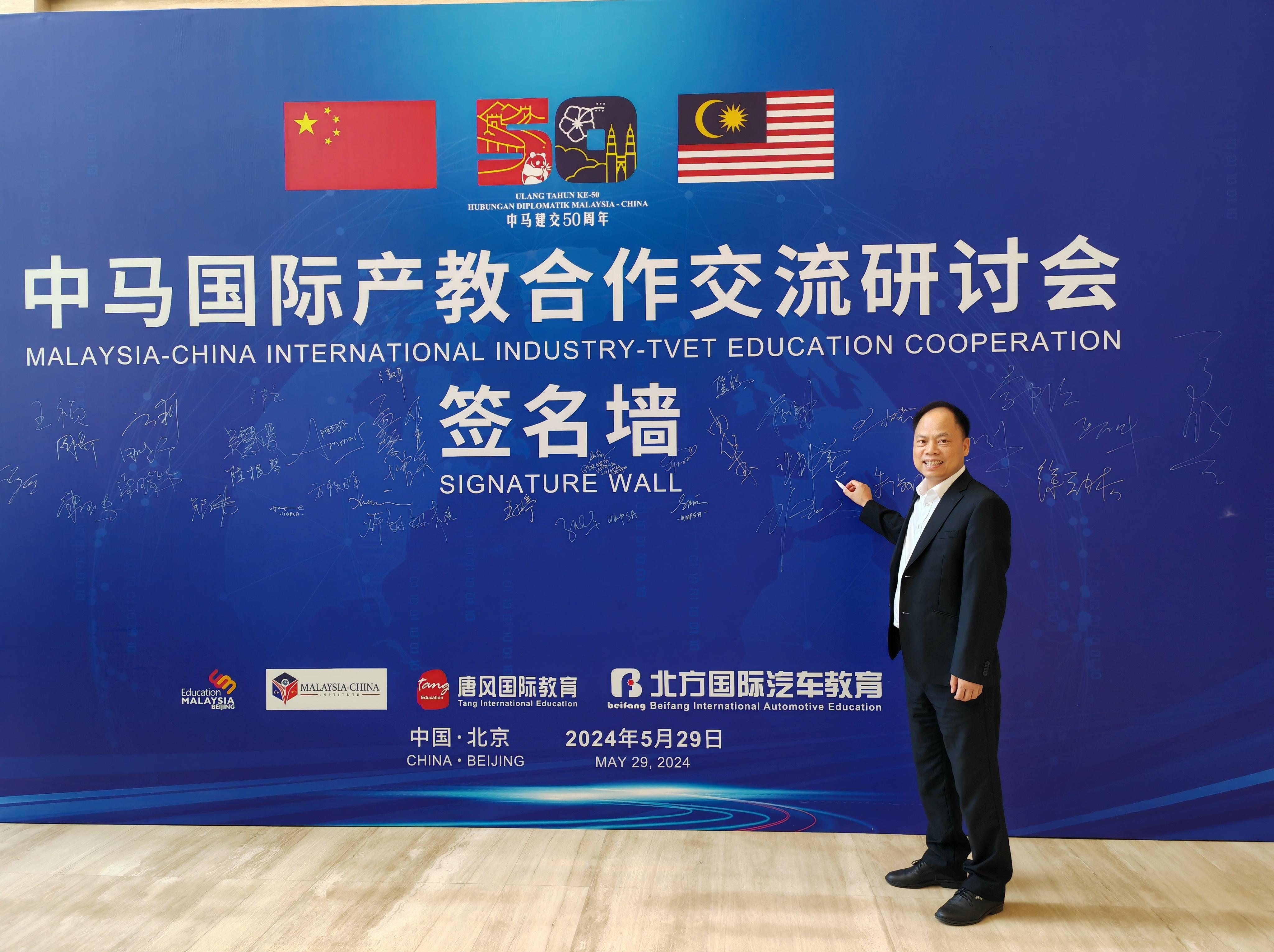本次研讨会旨在落实中马两国领导人共识,进一步推动两国产教合作高质量发展,更好地服务“一带一路”倡议,助推中马命运共同体建设。会议由马来西亚驻华大使馆、中马产教国际合作中心、唐风国际教育集团、马来西亚全国职业工友会等单位联合主办。会议期间,马来西亚全国职业工友会向70余所中方院校发出诚挚邀约,期待更多中国院校参与到“中马青年职教培训计划”当中来。