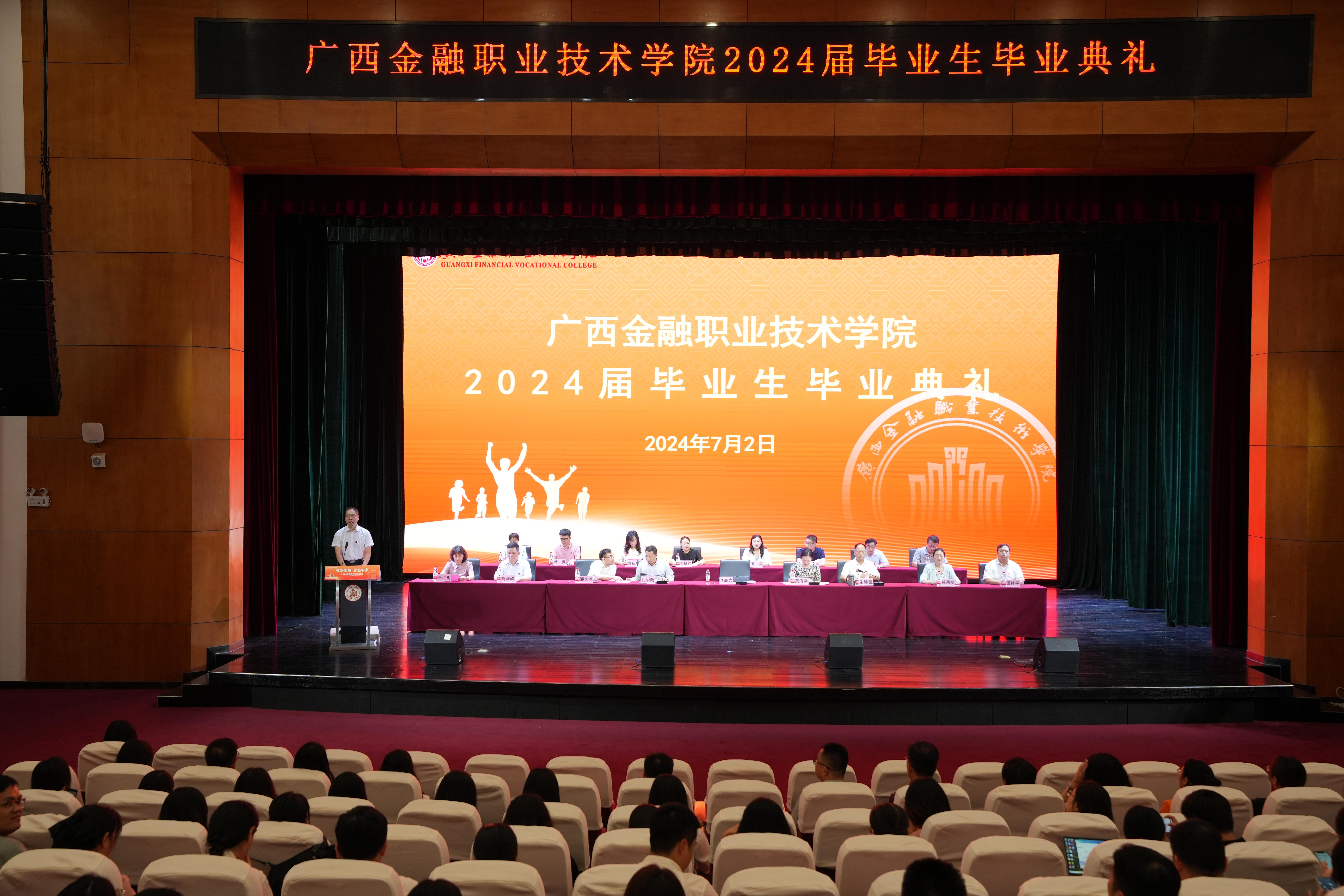 莫海燕校长发表致辞,她代表学校向圆满完成学业的毕业生们表示热烈祝贺与衷心祝愿,向毕业生的师长、家人们表示敬意与感谢。莫海燕校长表示,在这三年里各位毕业生始终与党和国家同频共振,始终与母校同向同行,勇于让自己成长成才,留下了弥足珍贵的美好回忆,成为了金院发展历程中不可或缺的一部分。莫海燕校长寄语广大毕业生,一是不断涵养爱国情怀,在民族复兴伟业中挺膺担当;二是不断培塑创新思维,在新质生产力浪潮中勇立潮头;三是不断提升学习能力,在个人成长道路中书写璀璨华章。