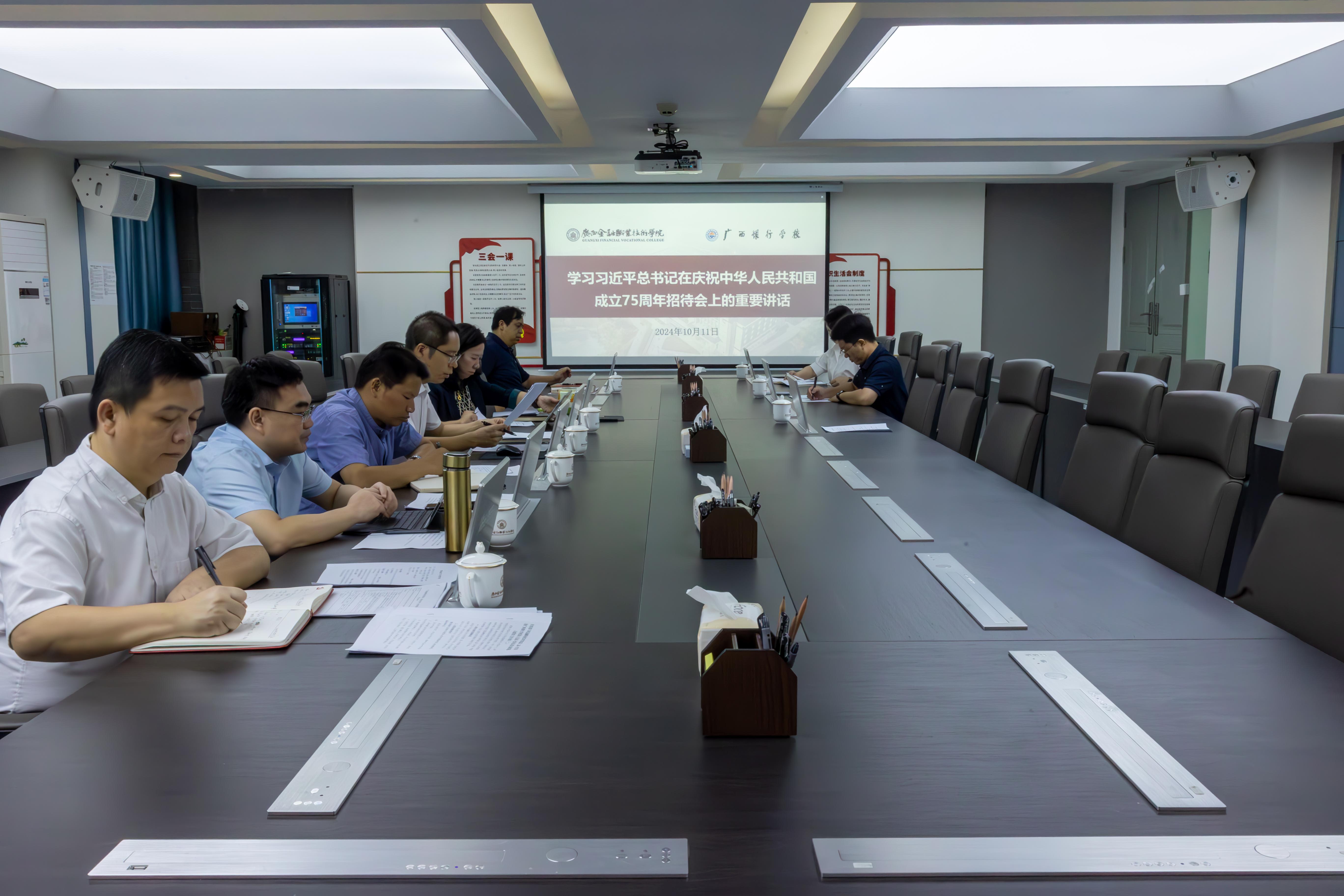 会议强调,习近平总书记的重要讲话深刻总结了75年来我们党团结带领全国各族人民取得的伟大成就,深刻阐述了新时代新征程推进中国式现代化的“四个必须坚持”。内容铿锵有力、催人奋进,激扬起亿万中华儿女共襄民族复兴伟业的磅礴力量。我们要紧密结合学校实际,把各项工作放在全区乃至全国大局中来审视、谋划和推进,努力让师生在共同奋斗中共享学校改革发展成果。