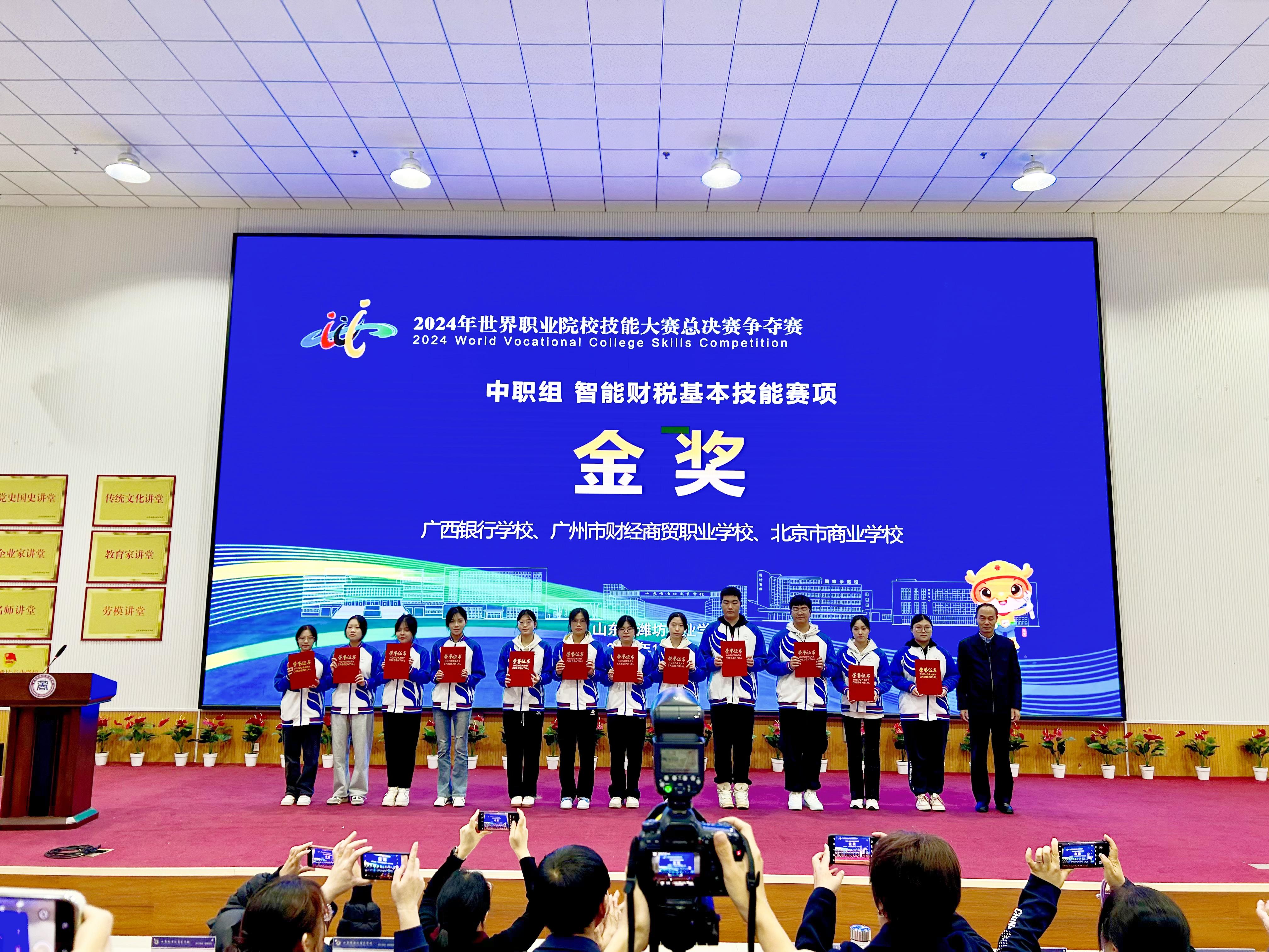 10月27日,2024年世界职业院校技能大赛总决赛争夺赛中职组《智能财税基本技能》赛项在山东省潍坊商业学校圆满落下帷幕。在此次技能比拼的激烈舞台上,kaiyun登录中国入口登录代表队作为代表广西出征的两支队伍之一,凭借着卓越的表现和精湛的技能,成功斩获全国金奖,实现kaiyun官网和广西职业院校在该赛项的重大突破!